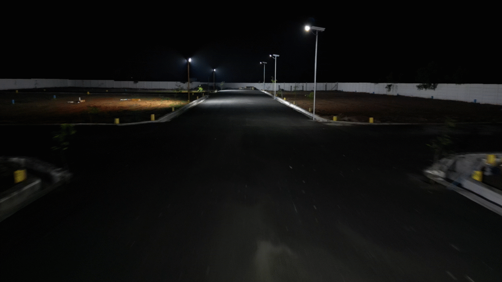 Well-laid 33 ft wide tar roads for smooth and easy access
